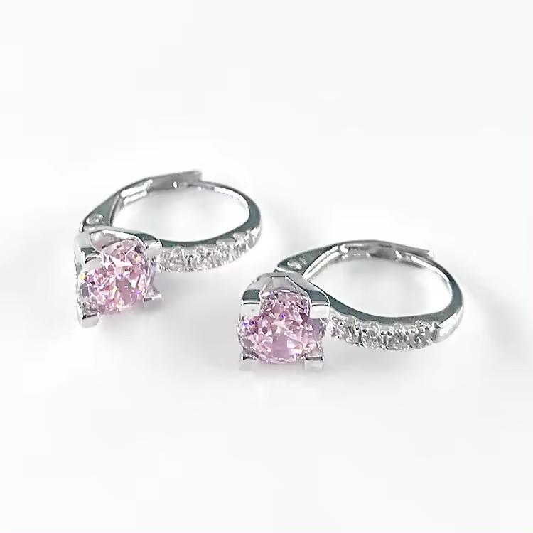 ต่างหูเพทายลูกบาศก์สีชมพูสีเงินเทียม925ประณีตหรูหรา