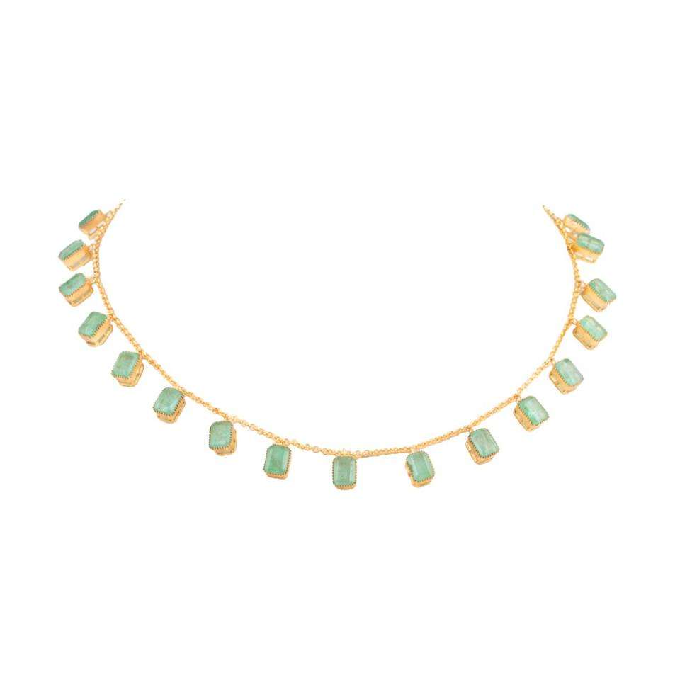 สร้อยคอประดับพลอยสีเขียวทรงเอเมอรัลด์สุดหรู | เครื่องประดับงานเลี้ยงเรียบหรูสำหรับผู้หญิง ผลิตภัณฑ์ใหม่ Gajaah เงินแท้ 925