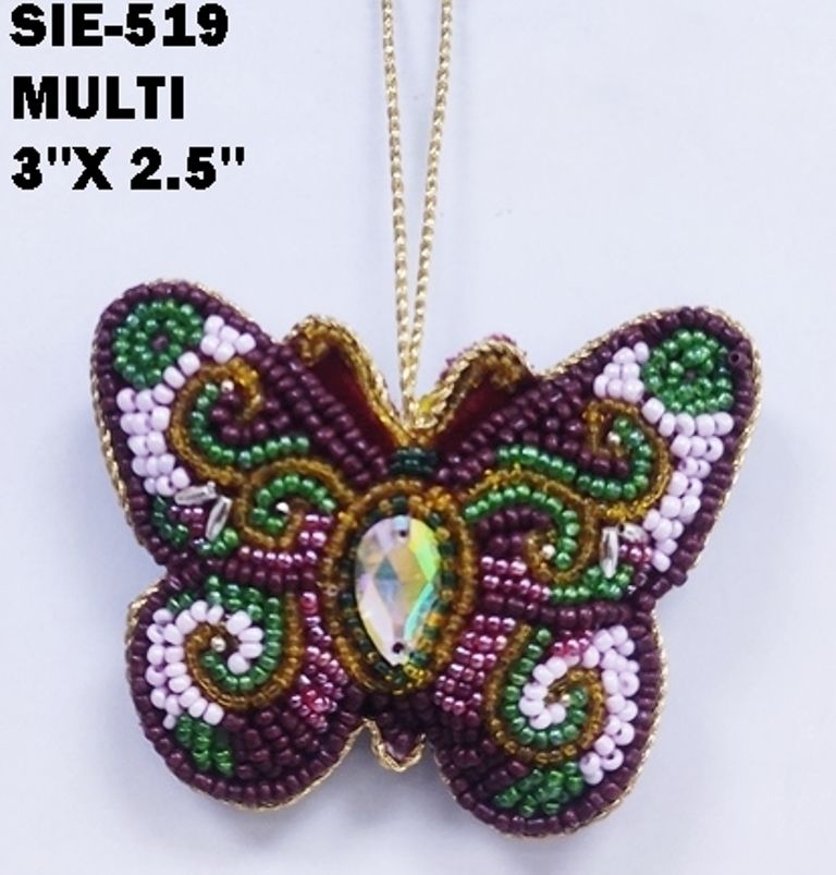 เครื่องประดับผีเสื้อหลากสีประดับด้วยลูกปัดทำมืออย่างประณีต พร้อมประดับด้วยอัญมณีสีรุ้งและห่วงแขวนสีทอง