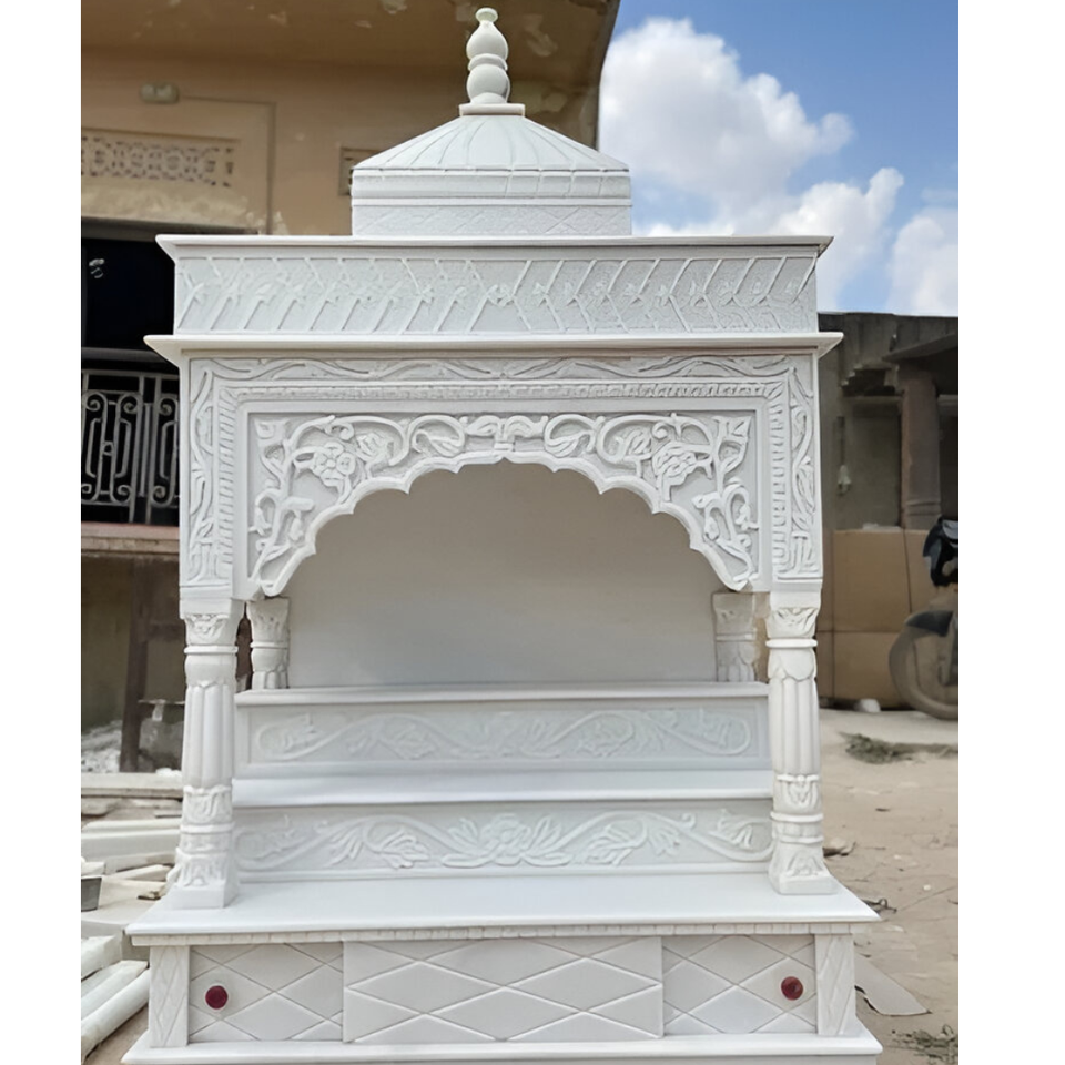 รูปปั้นตกแต่งบ้านที่มีความประณีตแกะสลักรูปวิหารหินอ่อนสีขาวดีไซน์ซับซ้อนงานฝีมือแบบดั้งเดิมหรูหราทางศาสนา