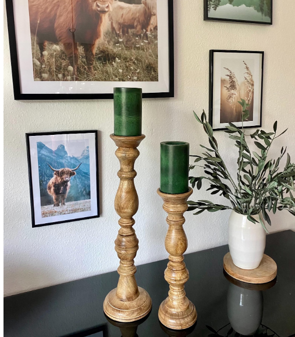 เชิงเทียนไม้แกะสลักด้วยมือที่งดงามของตกแต่งบ้านในเทศกาลคริสต์มาสที่สง่างามพร้อมด้วยงานฝีมือที่มีรายละเอียด
