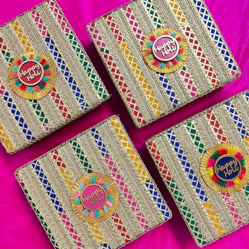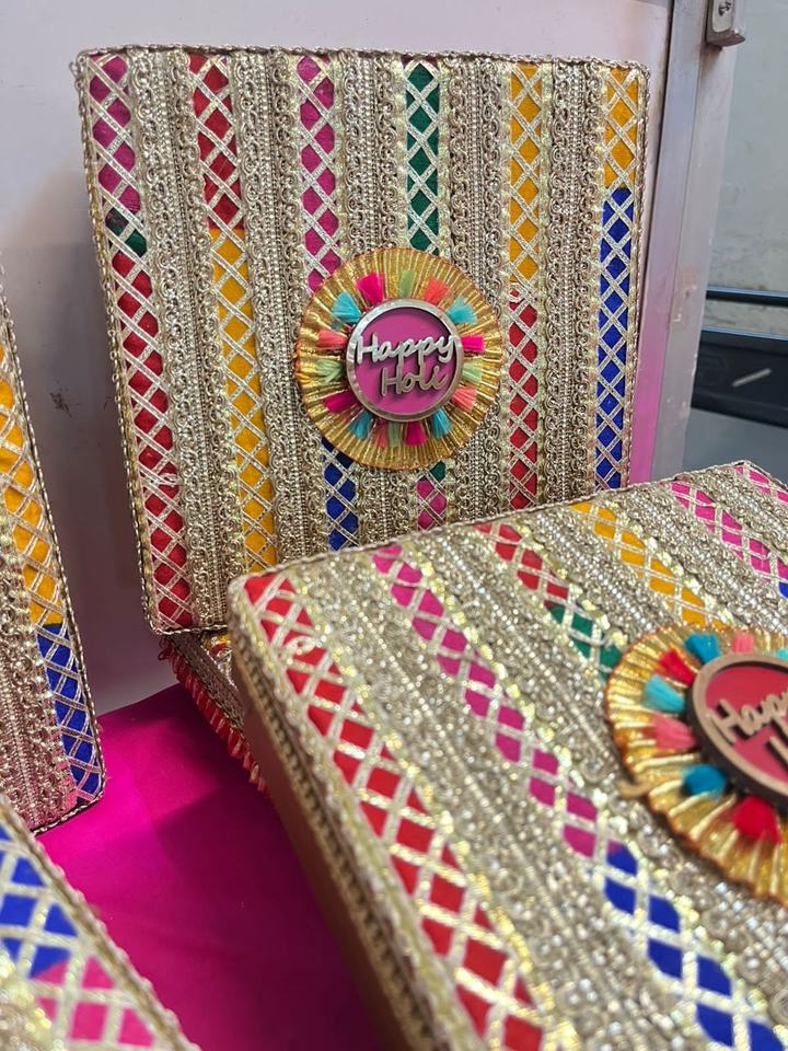 กล่องของขวัญงานฝีมือประณีตประดับด้วยลูกปัดโกต้า พร้อมงานปักลูกปัดโกต้าและงานปักหลากสีสันสดใสบนฐานสุดหรู