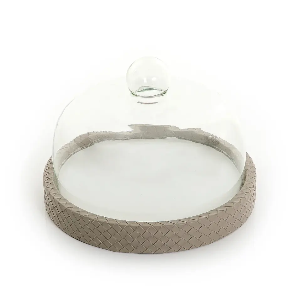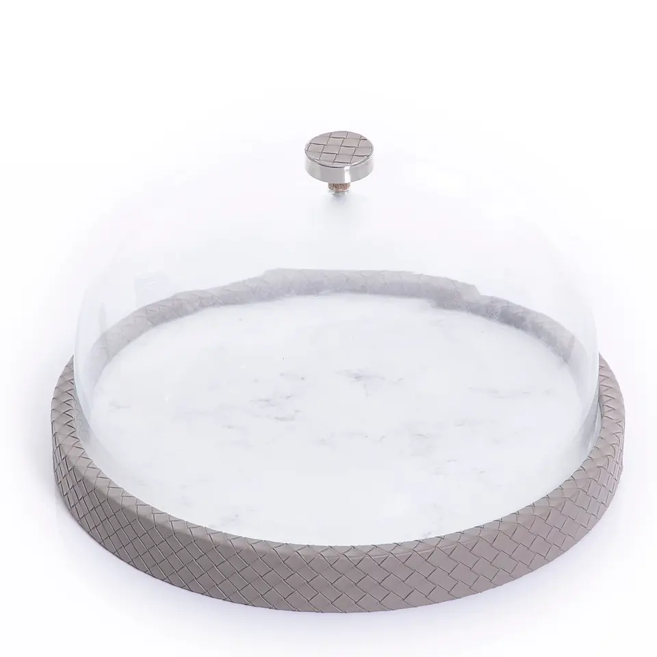 โดมของหวานขนาดกลางที่ทำด้วยมืออันประณีตทำจากหนังและกระจกระดับพรีเมียมเหมาะสำหรับเครื่องใช้บนโต๊ะอาหารและเครื่องครัวที่หรูหรา