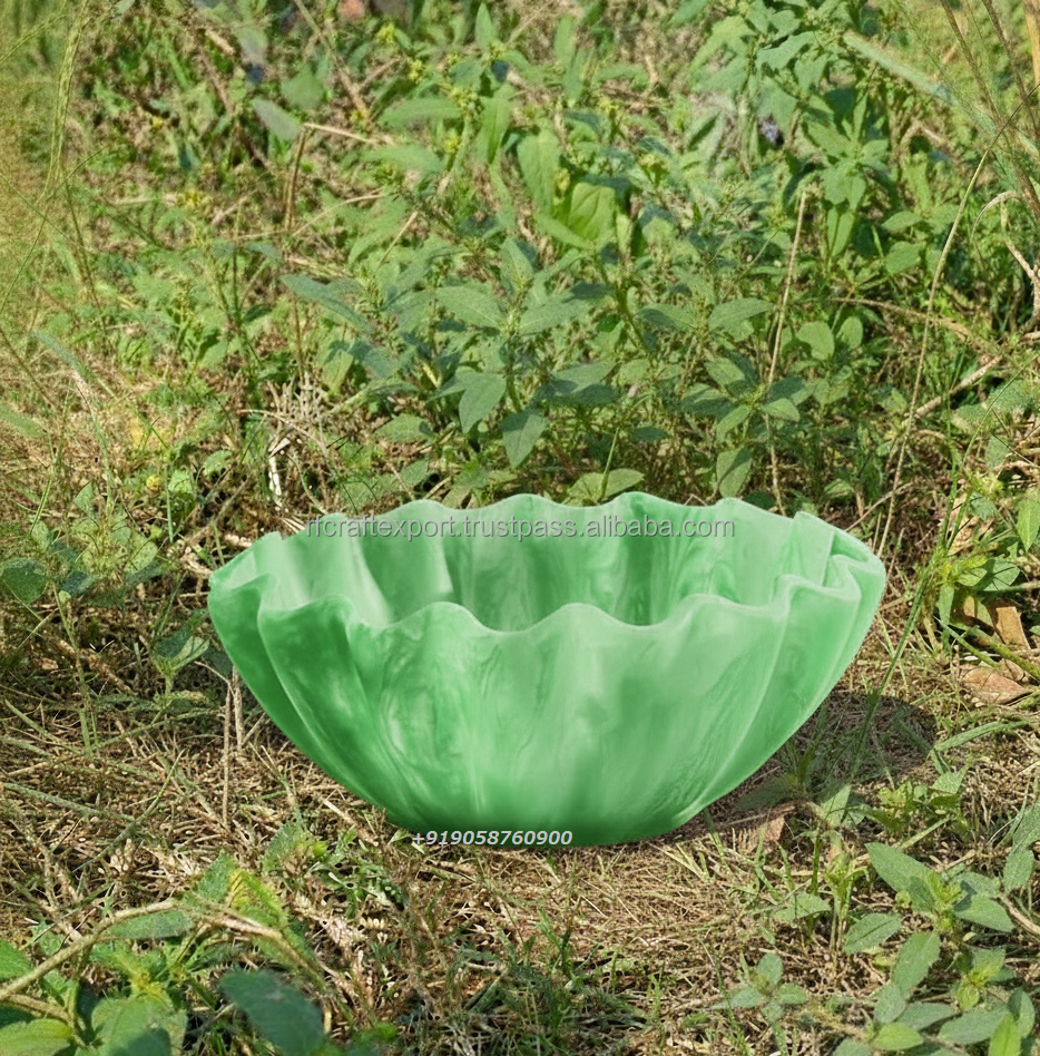 ชามผลไม้เรซิ่นขอบหยักประณีตทำมือ – ดีไซน์หินอ่อนสีชมพูและสีขาวสุดหรู – ของตกแต่งโต๊ะและของประดับกลางโต๊ะสุดหรู