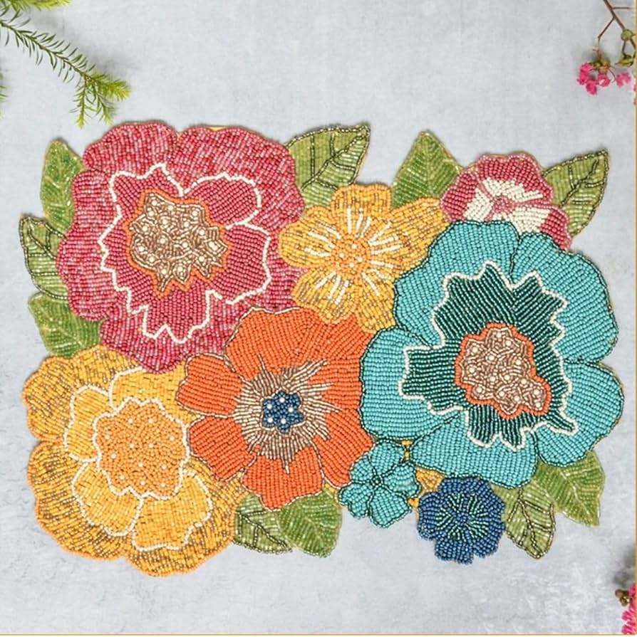 แผ่นรองจานดอกไม้ประดับด้วยลูกปัดที่ได้รับแรงบันดาลใจจากวินเทจแผ่นปูโต๊ะตกแต่งด้วยกลีบดอกไม้สีส้มสีขาวและสีน้ำตาล