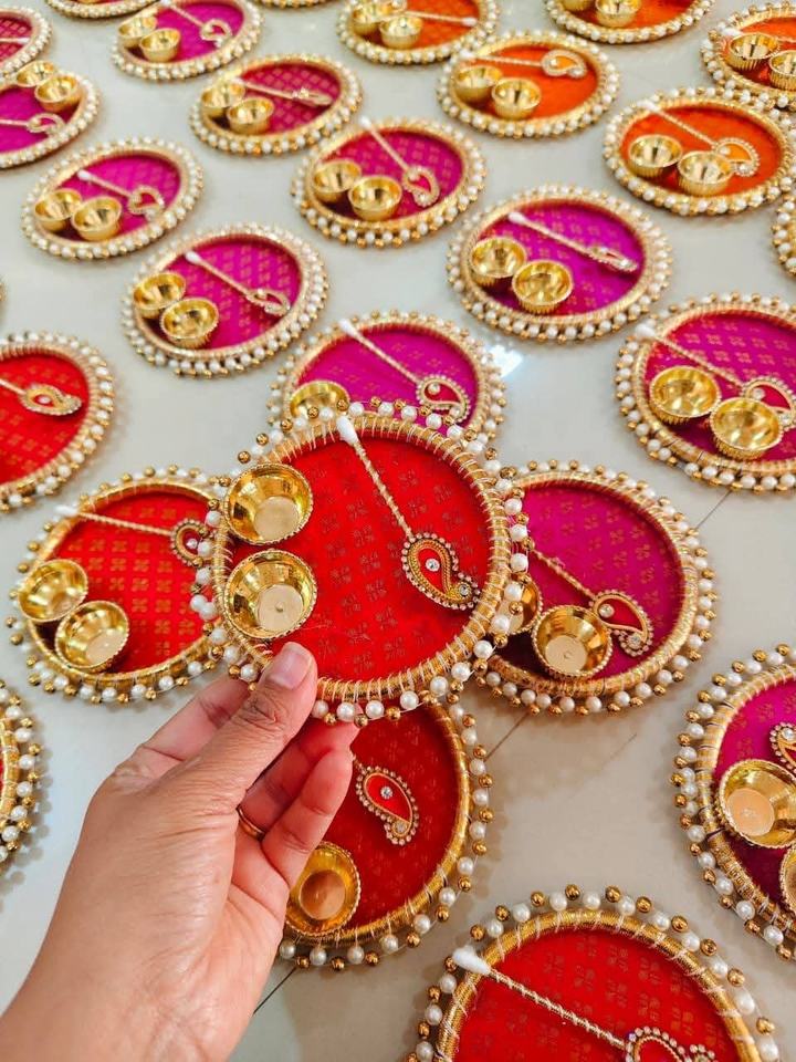 ผ้าไหมแบบดั้งเดิม Pooja Thali สำหรับเทศกาลของขวัญคืนงานแต่งงานและพิธีทางศาสนา