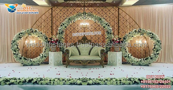 ฉากหลังงานแต่งงานอินเดียสุดหรู พร้อมขาตั้งเทียนโลหะสำหรับงานแต่งงานสมัยใหม่ ของตกแต่งงานแต่งงานที่น่าทึ่ง โครงโลหะ ผลิตในอเมริกา
