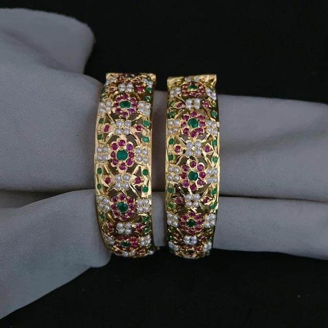 กำไล Jadau ประดับด้วยดอกไม้ที่มีเสน่ห์สร้อยข้อมืออัญมณีชุดกำไลทองเหลืองชุบทองสำหรับเจ้าสาวสำหรับผู้หญิงสำหรับงานเฉลิมฉลองพิเศษ