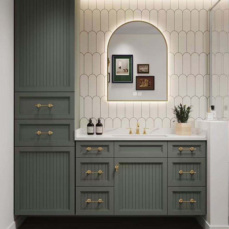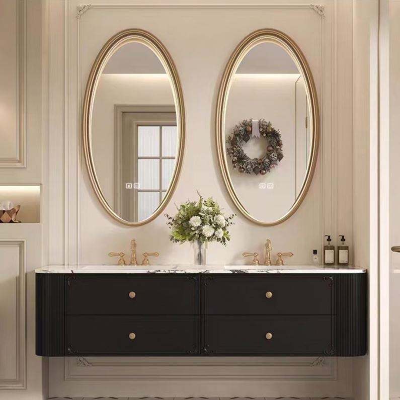 อ่างล้างหน้าแบบแขวนผนังสไตล์เรโทรสุดหรู พร้อมกระจกโค้งติดผนังแบบหลายชั้นสำหรับห้องน้ำ
