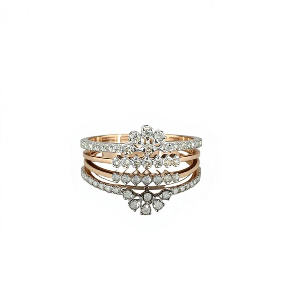 แหวนเพชรทรงดอกไม้หรูหราประณีต ทองคำขาว 14KT ชุบทองสำหรับผู้หญิง ได้รับการรับรองจาก IGI เพชรทรงบริลเลียนท์ 0.33 กะรัต VS SI