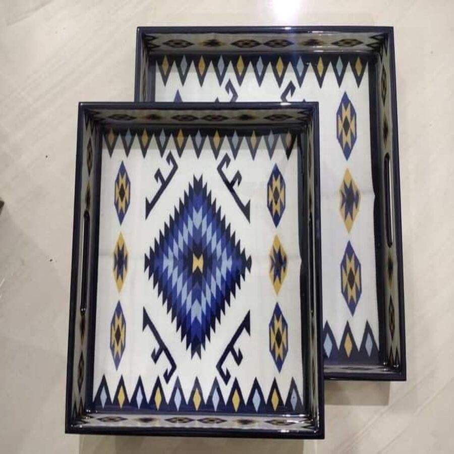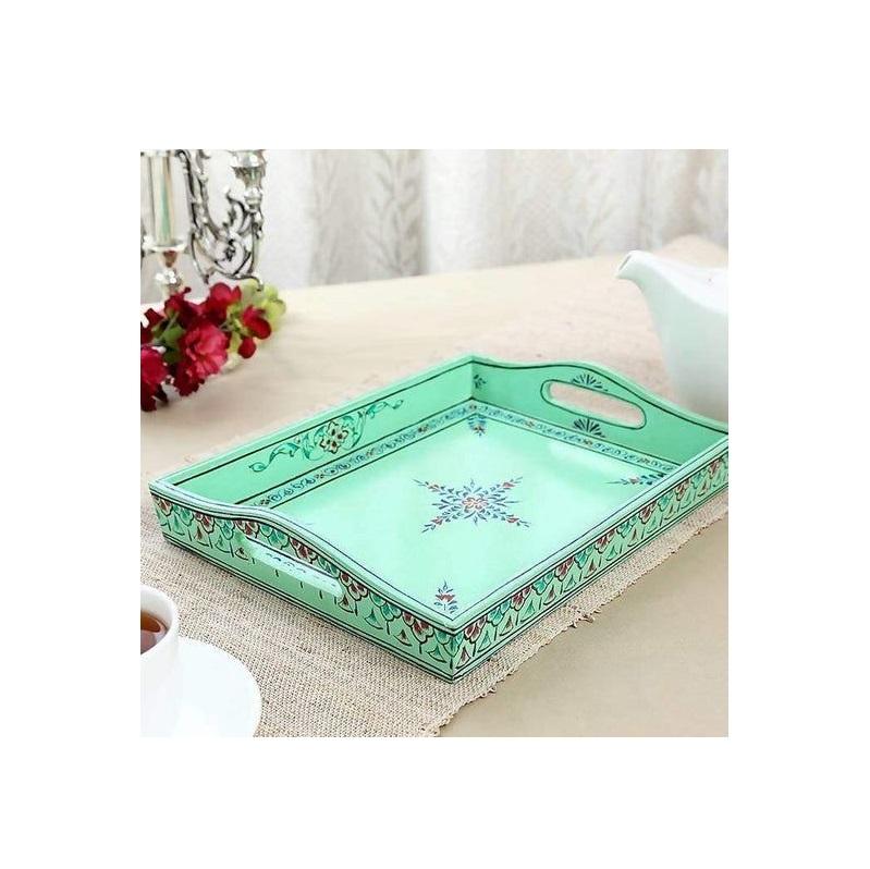 ถาดไม้อะคาเซียตกแต่งบ้านงานทำมือสไตล์อินเดียที่สวยงามเป็นมิตรต่อสิ่งแวดล้อมถาดเสิร์ฟศิลปะหลากสีสุดหรู