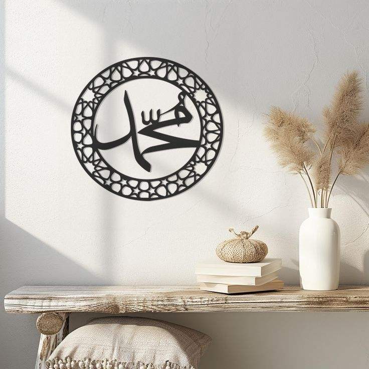 งานศิลปะติดผนังโลหะสไตล์อิสลามสุดประณีต โดดเด่นด้วยรายละเอียดที่ประณีตและดีไซน์ที่ได้รับแรงบันดาลใจจากศรัทธาอย่างสง่างาม เหมาะสำหรับตกแต่งภายในระดับพรีเมียม