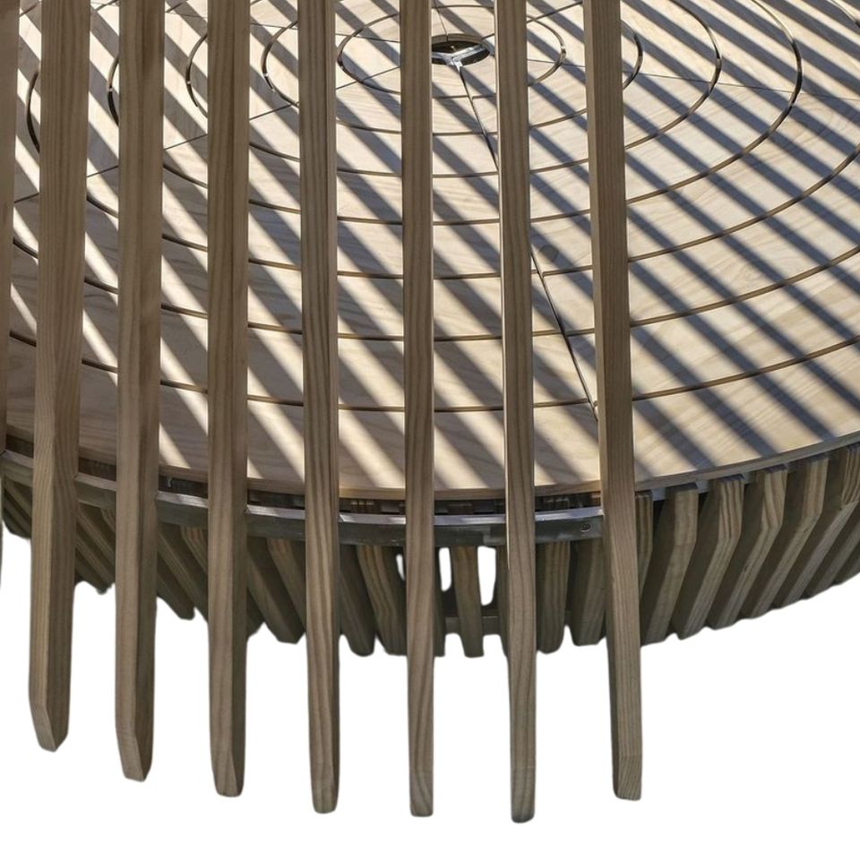 เตียงนอนกลางแจ้งดีไซน์ทันสมัย งานฝีมือประณีต โครงสร้างไม้สักและเหล็กกล้าไร้สนิม พร้อมเบาะรองนั่งทนทานต่อสภาพอากาศ เป็นมิตรกับสิ่งแวดล้อม เหมาะสำหรับโรงแรมและสวน