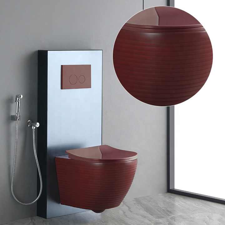 ที่สวยหรูหลากสีเซรามิกติดผนังห้องน้ำไม่มีขอบพอร์ซเลนสุขภัณฑ์แขวนผนังห้องน้ำ