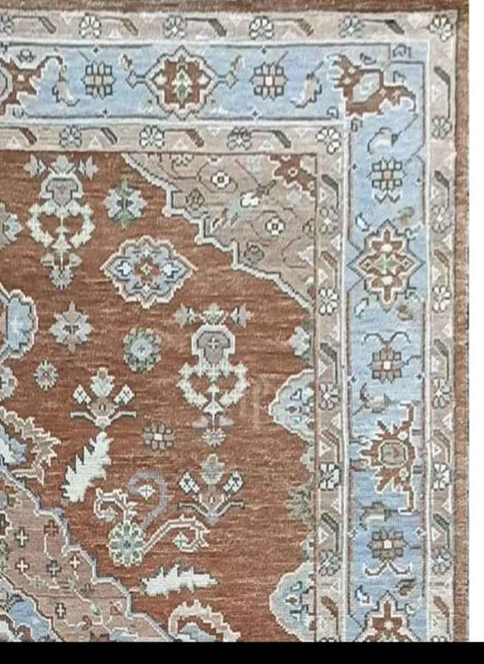 พรมขนสัตว์ถักมือสีทองแดง/สีฟ้าอ่อนคุณภาพดีที่สุดสำหรับห้องนั่งเล่นกำหนดขนาดได้เอง
