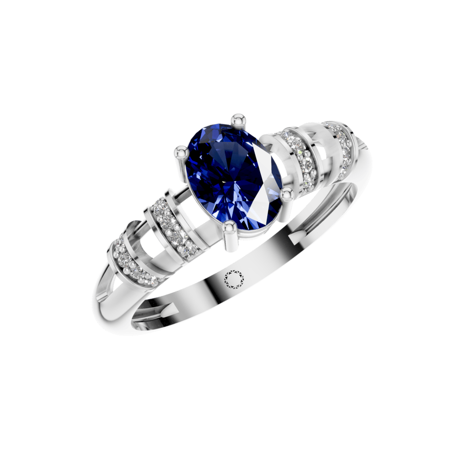 Style:Split Band Ring with Oval Sapphire and Diamond Accents