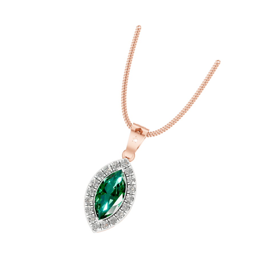 Style:Marquise Shape Emerald Gemstone Pendant with Natural Diamonds