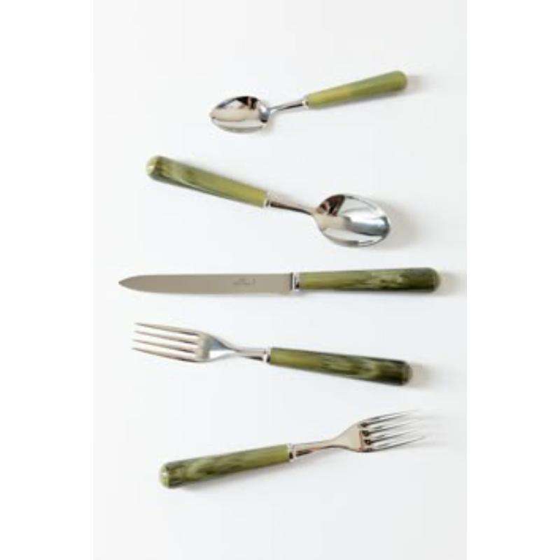 ชุดช้อนส้อมมีดด้ามจับทำจากเรซินอันประณีตมีดีไซน์ตามหลักสรีรศาสตร์และสแตนเลสเกรดสูงเพื่อสัมผัสการรับประทานอาหารร่วมสมัย