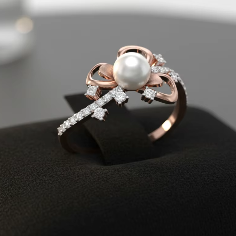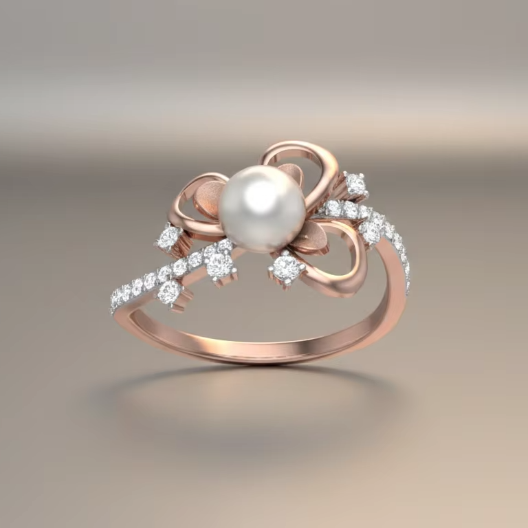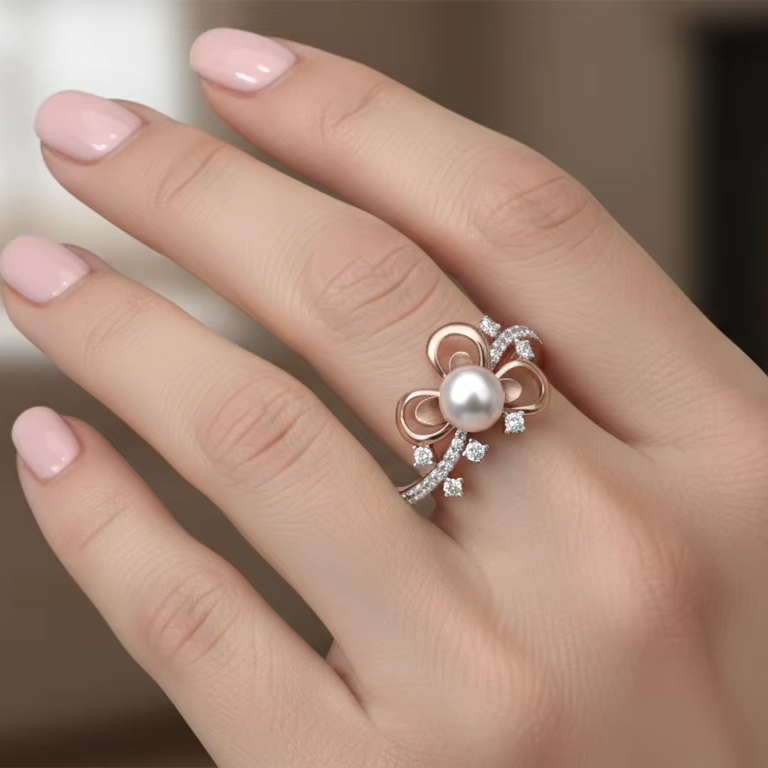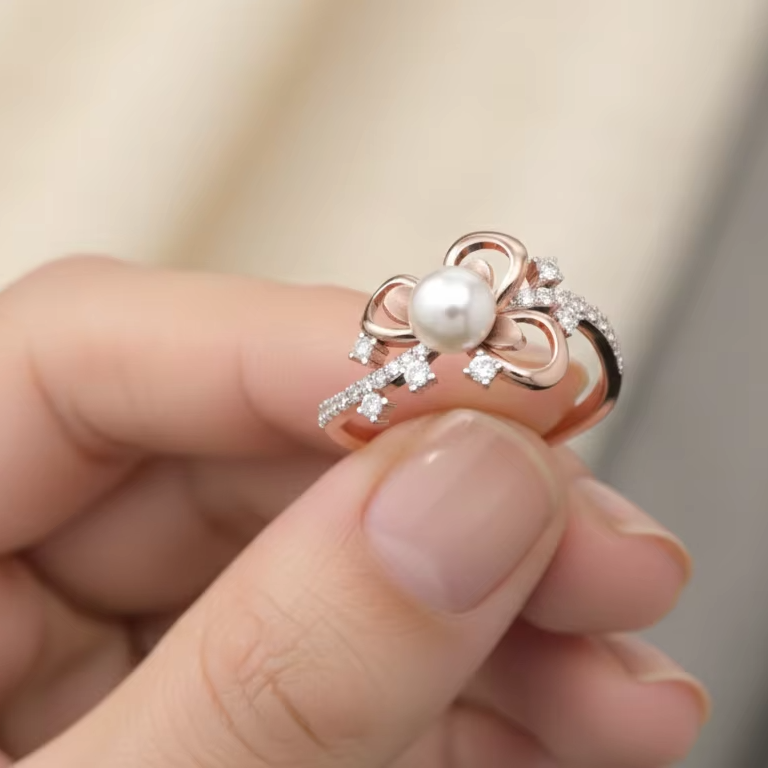 แหวนมุกผีเสื้อสีโรสโกลด์ที่สวยงาม โรแมนติก เครื่องประดับเจ้าสาว ของขวัญวันครบรอบ