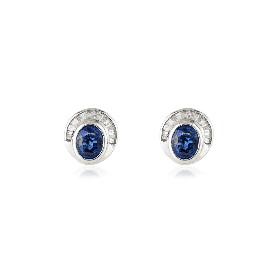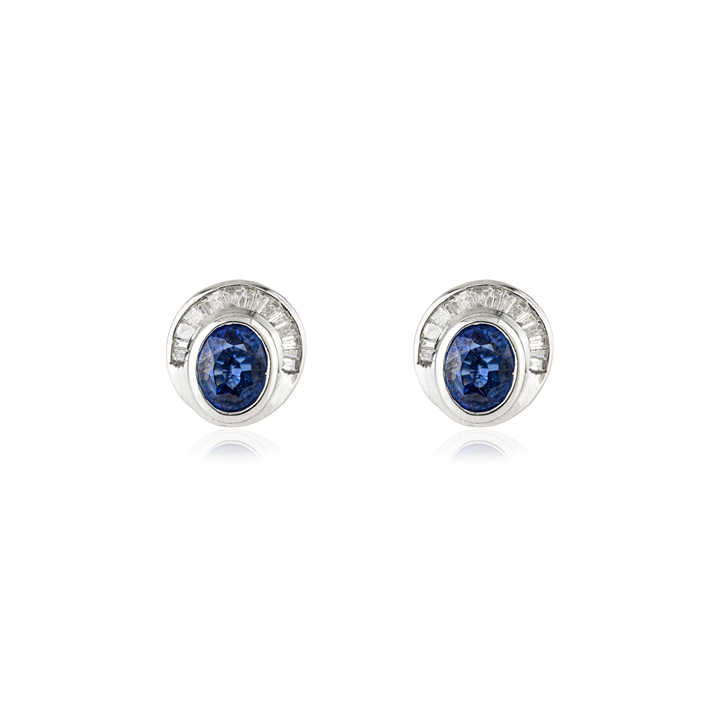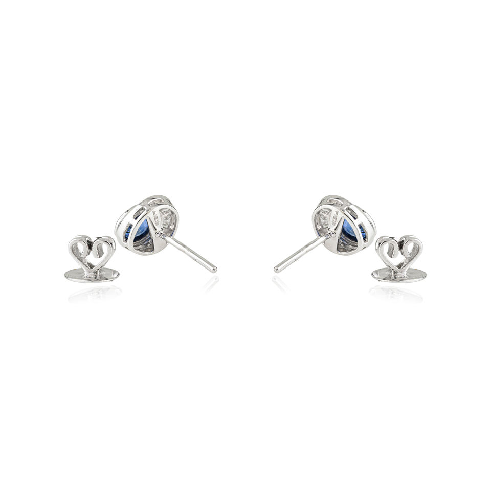 ต่างหูเพชรพลอยไพลินสีน้ำเงินและเพชรแท้ 14K ทองคำขาวแท้ ดีไซน์โดดเด่น สำหรับคนเกิดเดือนกันยายน ขายส่งเครื่องประดับอัญมณี