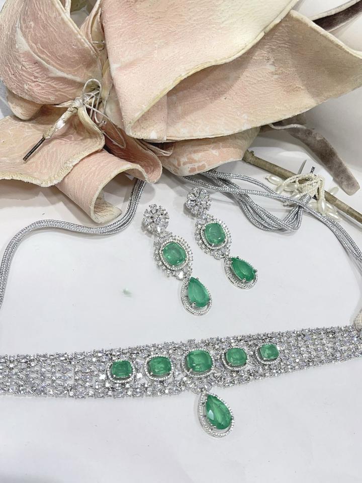 ชุดโชคเกอร์หินสีเงินสุดหรูเครื่องประดับดีไซน์เนอร์พร้อมต่างหูสำหรับผู้หญิงสำหรับคอลเลกชันเครื่องแต่งกายแบบดั้งเดิมและปาร์ตี้