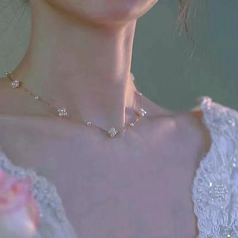 สร้อยคอมุกน้ำจืดธรรมชาติ ดีไซน์หรูหรา แสงอ่อนละมุน ดุจเทพธิดาแห่งฤดูร้อน ประดับด้วยลูกบอลดอกไม้ ดีไซน์ท้องฟ้าเต็มดาว สำหรับผู้หญิง