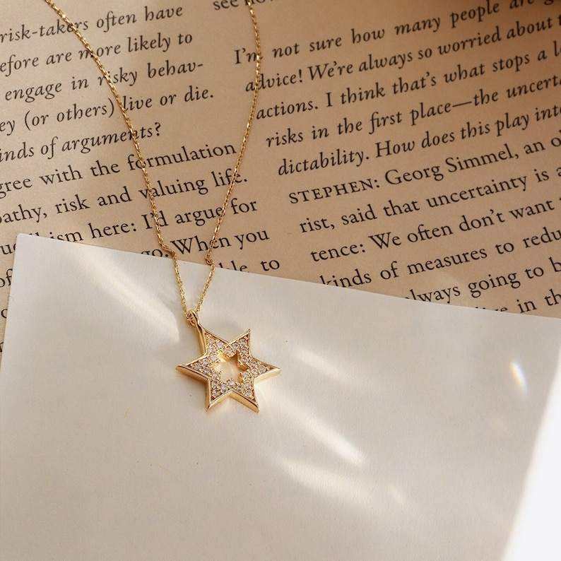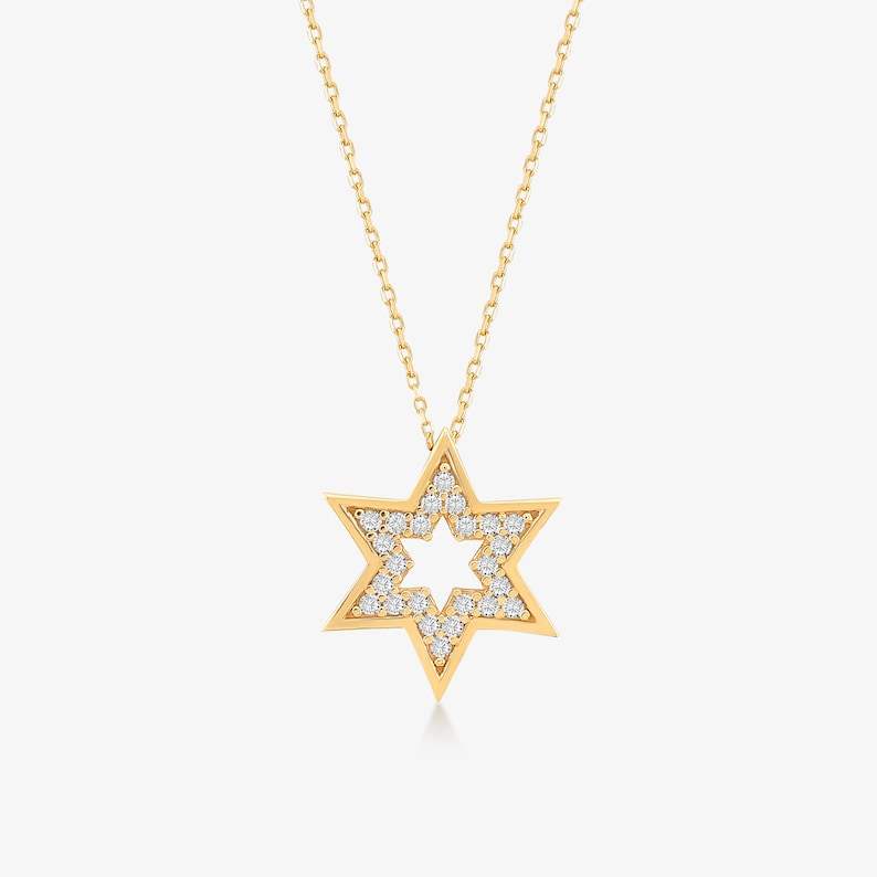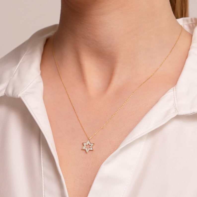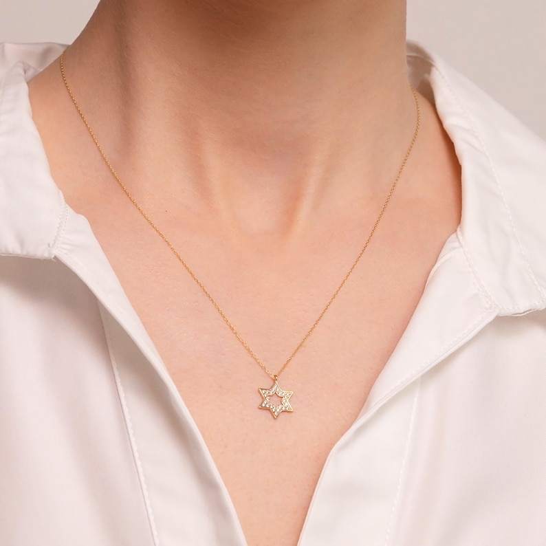 เครื่องประดับที่เรียบง่ายทันสมัยสวยงาม14K ทองแท้ชาวยิวจี้สร้อยคอสำหรับผู้หญิงประดับด้วยเพชรแท้จำนวนมาก