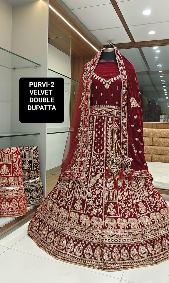 ชุดเดรสเจ้าสาวผ้ากำมะหยี่ออกแบบจากอินเดียชุดเดรสสำหรับเจ้าสาวที่สง่างาม