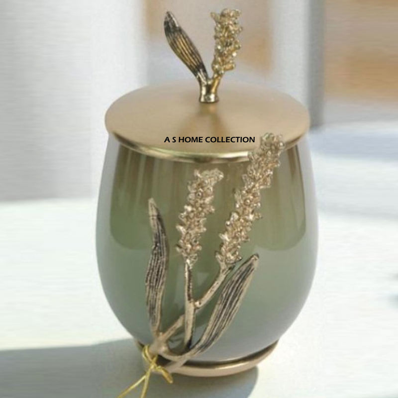 ภาชนะทรงกลมทำจากอลูมิเนียมและแก้วพร้อมฝาโลหะดีไซน์รูปใบไม้สไตล์วินเทจสวยงามใช้ในห้องครัว