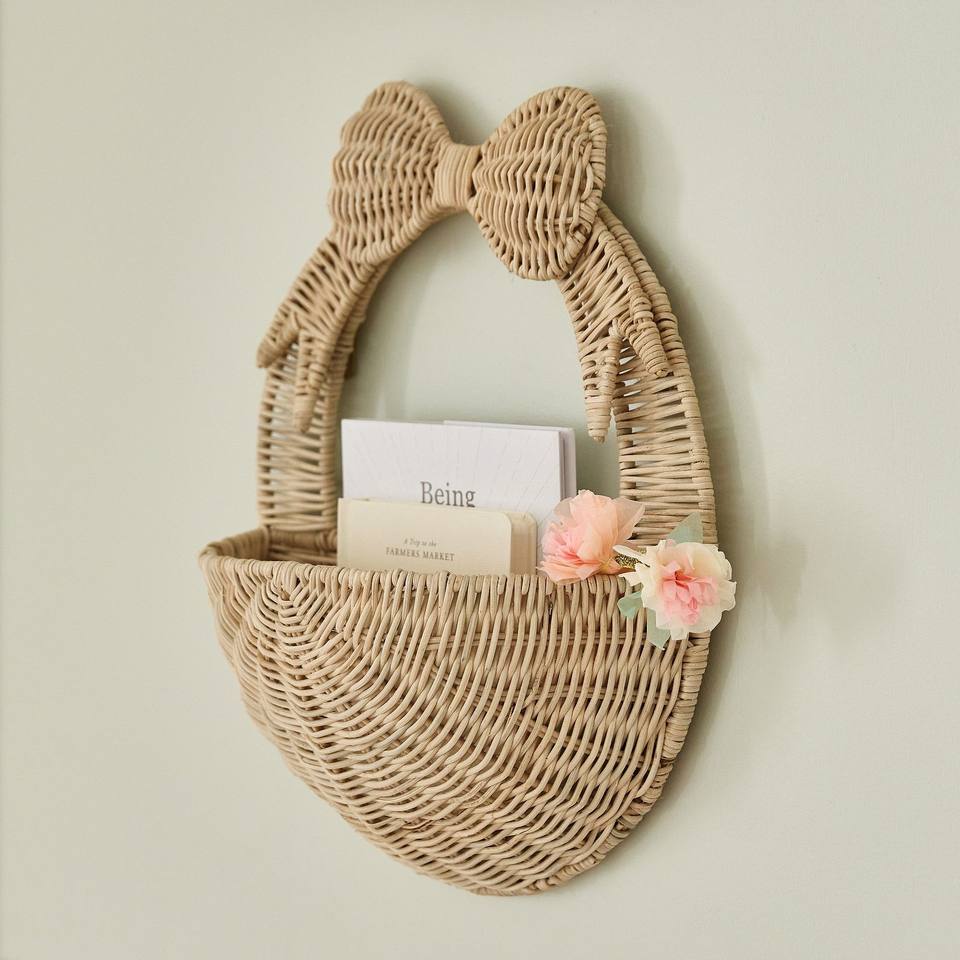 ตะกร้าหวายแขวนผนังสุดหรู ตะกร้าเก็บของตกแต่ง ตะกร้าจัดระเบียบหวายธรรมชาติ เหมาะสำหรับเก็บของติดผนังในห้องเด็ก