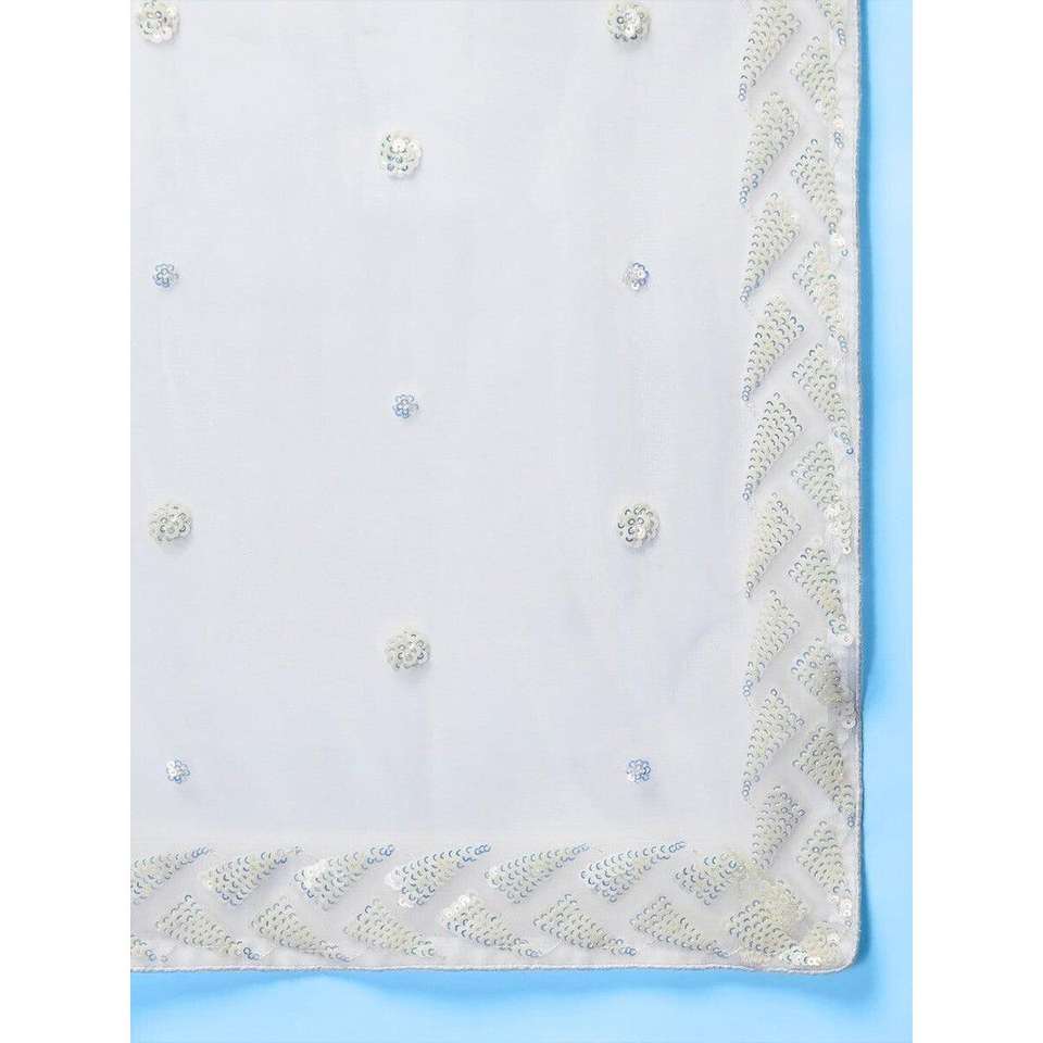 ชุดแต่งกาย lehenga choli กับ dupatta สีขาวเลื่อม