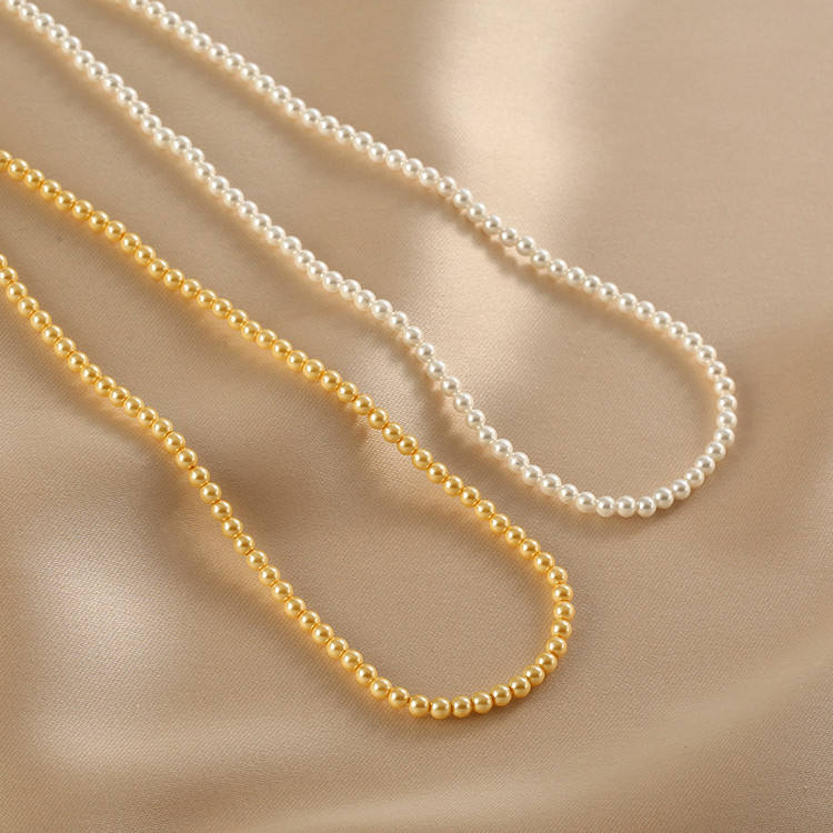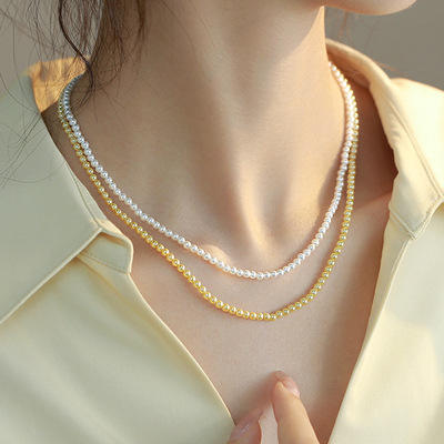 สร้อยคอดีไซน์หรูหราของผู้หญิงสวยงามสร้อยคอแฟชั่นแบบเป็นชั้นพร้อมลูกปัดข้าวไข่มุกโซ่กระดูกไหปลาร้าที่เรียบง่ายสง่างาม