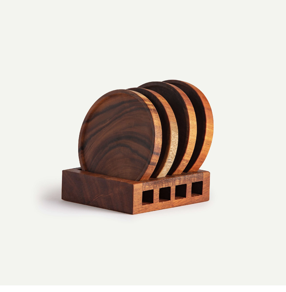 ถาดรองแก้วไม้สวยงามพร้อมสไตล์บรรจุภัณฑ์แบบกำหนดเองที่ไม่เหมือนใครพร้อมจานรองแก้ว