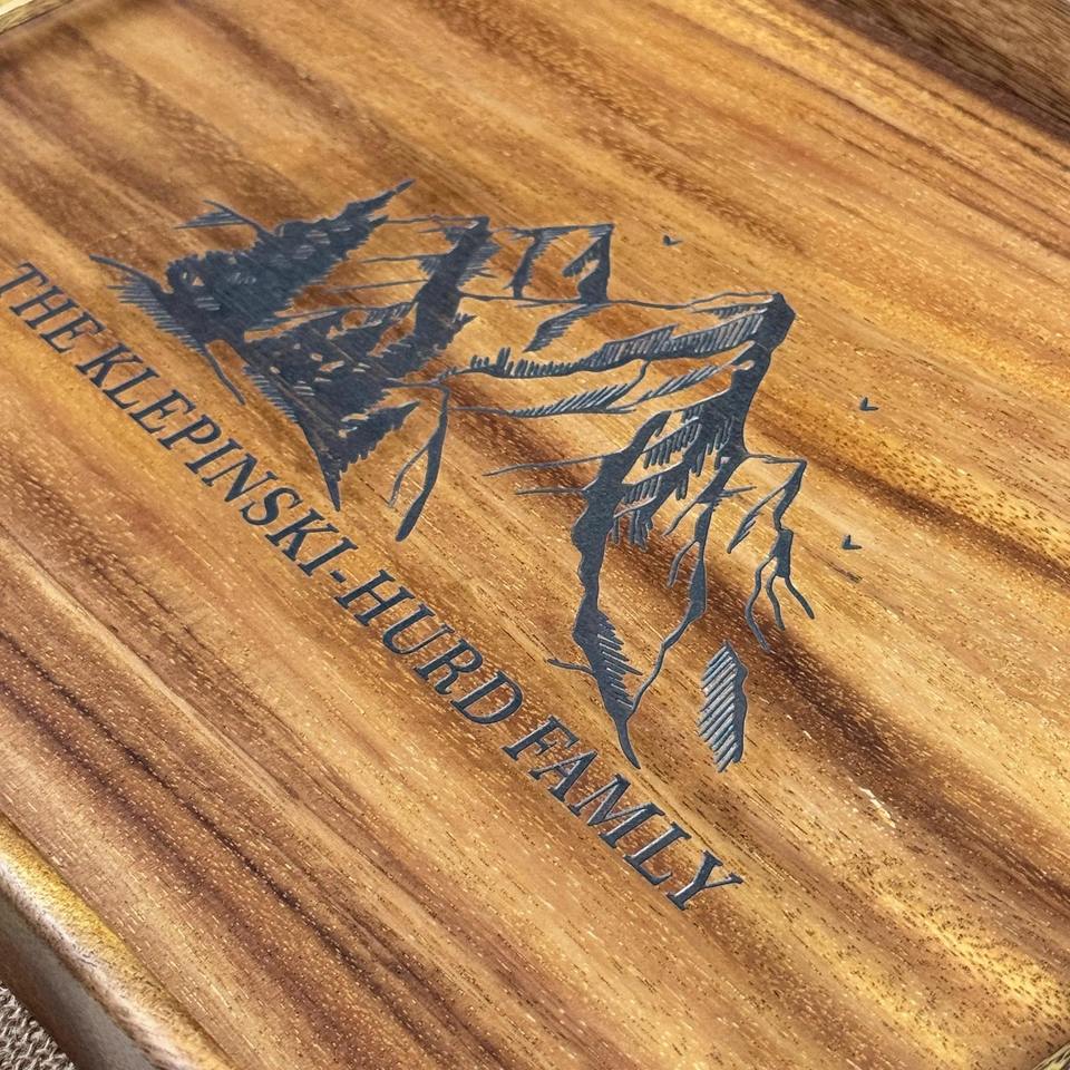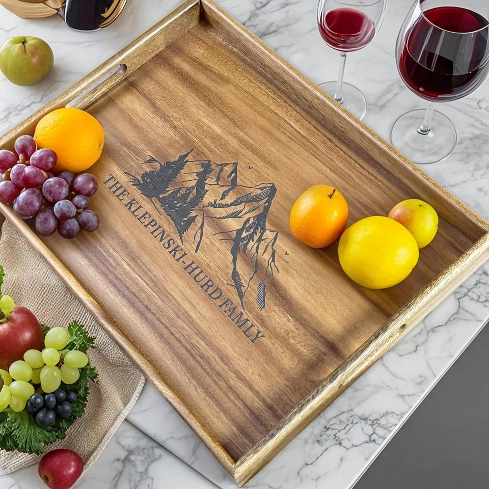 ถาดอาหารเช้าไม้สุดหรู ถาดไม้กระถินเทศมีหูจับ เหมาะสำหรับเสิร์ฟของว่าง ถาดอาหารสำหรับใช้ในครัว จานทันสมัย