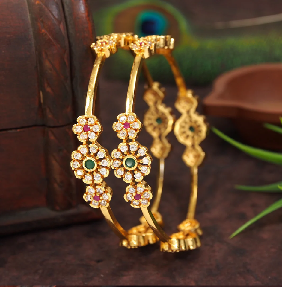กำไลทองเหลืองที่สวยงามพร้อมขอบลูกปัดชิ้นกลางดอกไม้และหินทับทิม/มรกตทรงสี่เหลี่ยมในราคาขายส่ง
