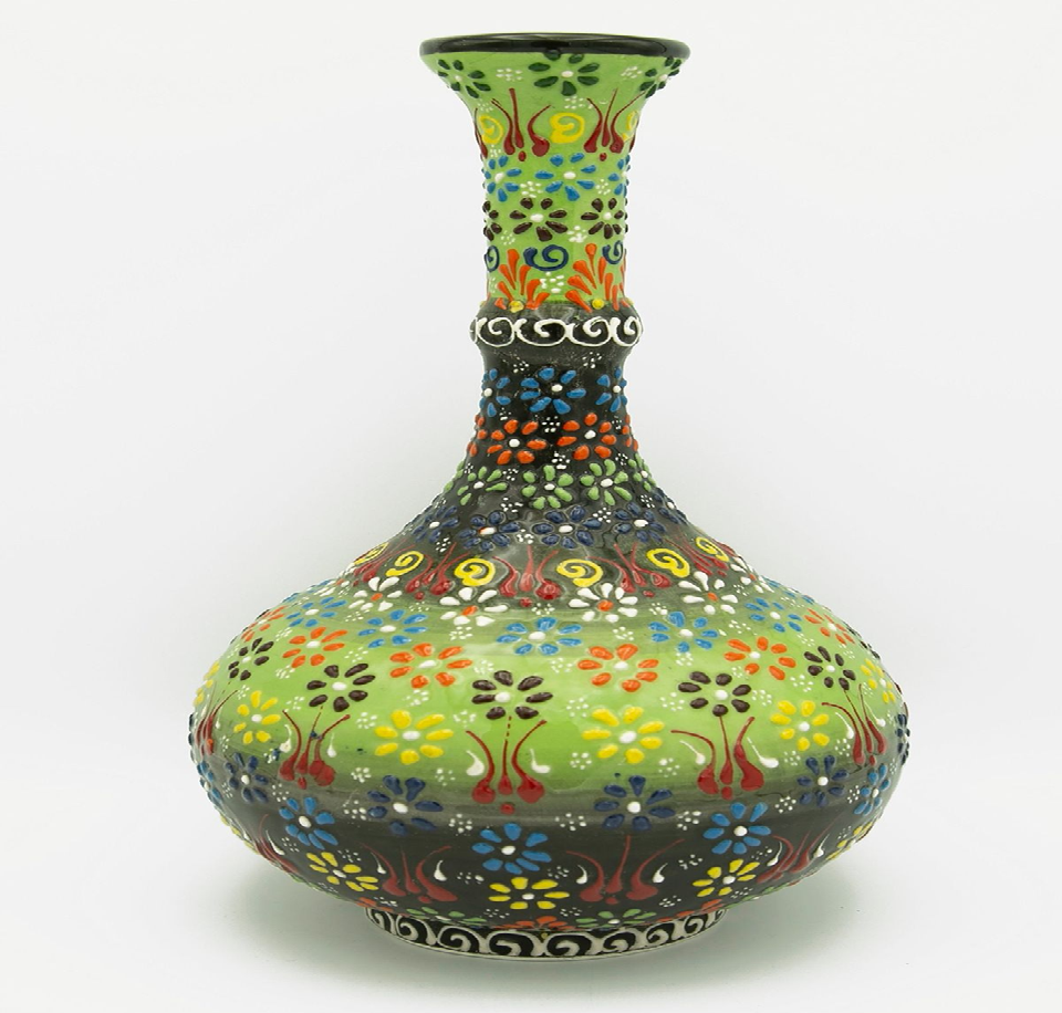 แจกันดอกไม้สีแดงลายดอกไม้แบบตุรกี วาดด้วยมืออย่างประณีต ขอบจีบระบายสวยงาม วางจำหน่ายแล้วในราคาขายส่ง