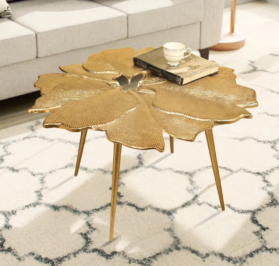 โต๊ะกาแฟโลหะสีขาวที่สวยงามและฐานโลหะสีทองที่โดดเด่นโต๊ะกาแฟโลหะสำหรับห้องนั่งเล่น