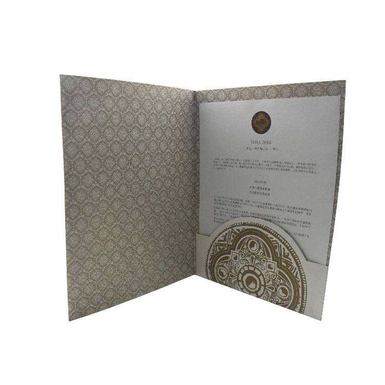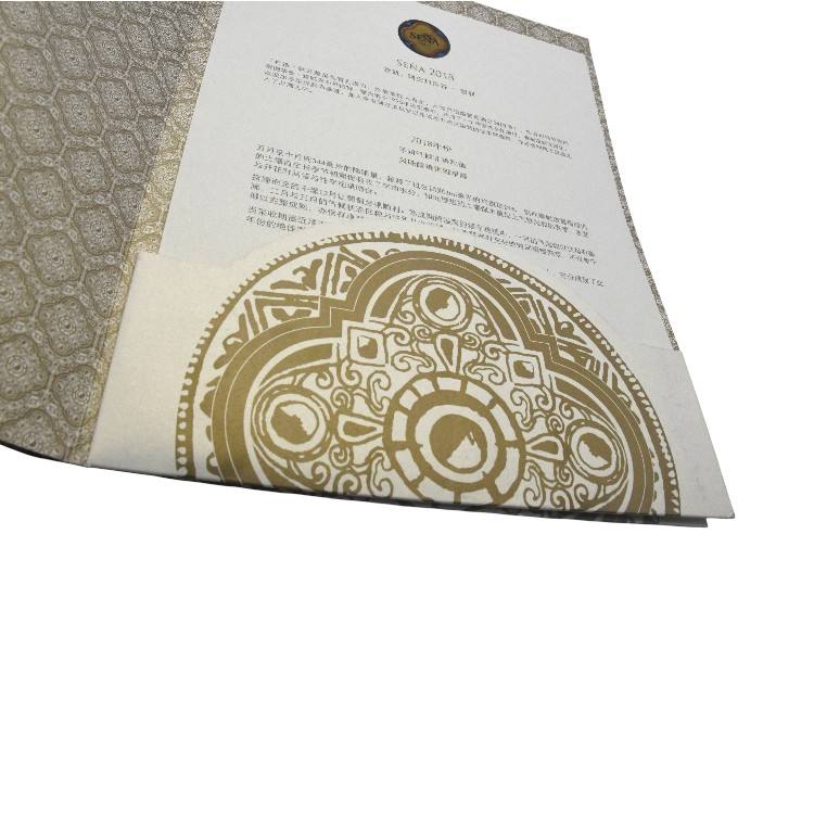แฟ้มนำเสนอพิมพ์ลาย UV ปั๊มฟอยล์ทอง ประณีต พร้อมลวดลายนูนอย่างประณีต สำหรับการ์ดเชิญสุดหรู