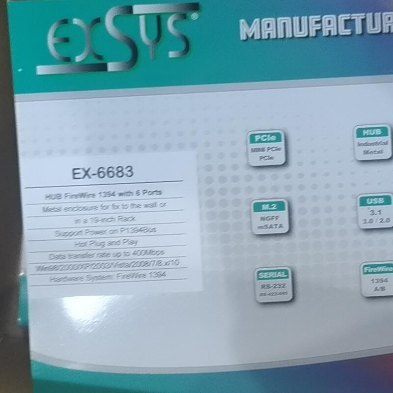 Exsys Ex-6683 FireWire 1394 ฮับ 6 พอร์ต ตัวเรือนโลหะสำหรับงานอุตสาหกรรม สำหรับติดผนังหรือติดตั้งบนแร็ค