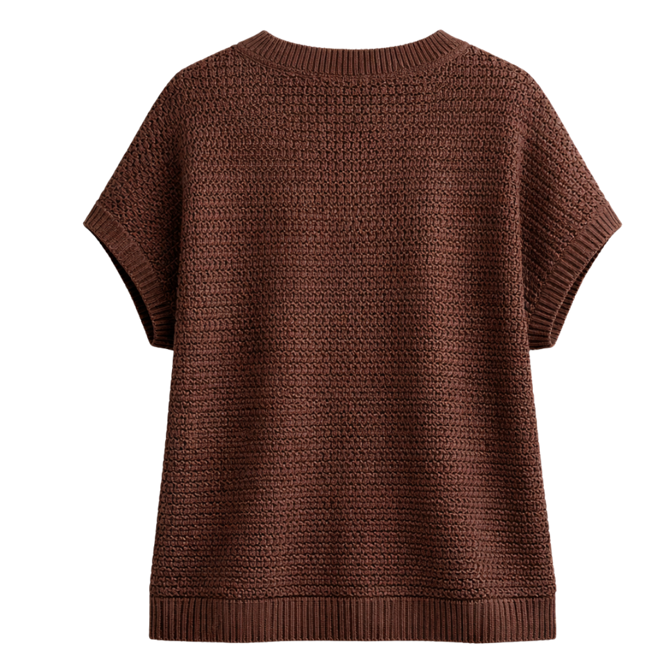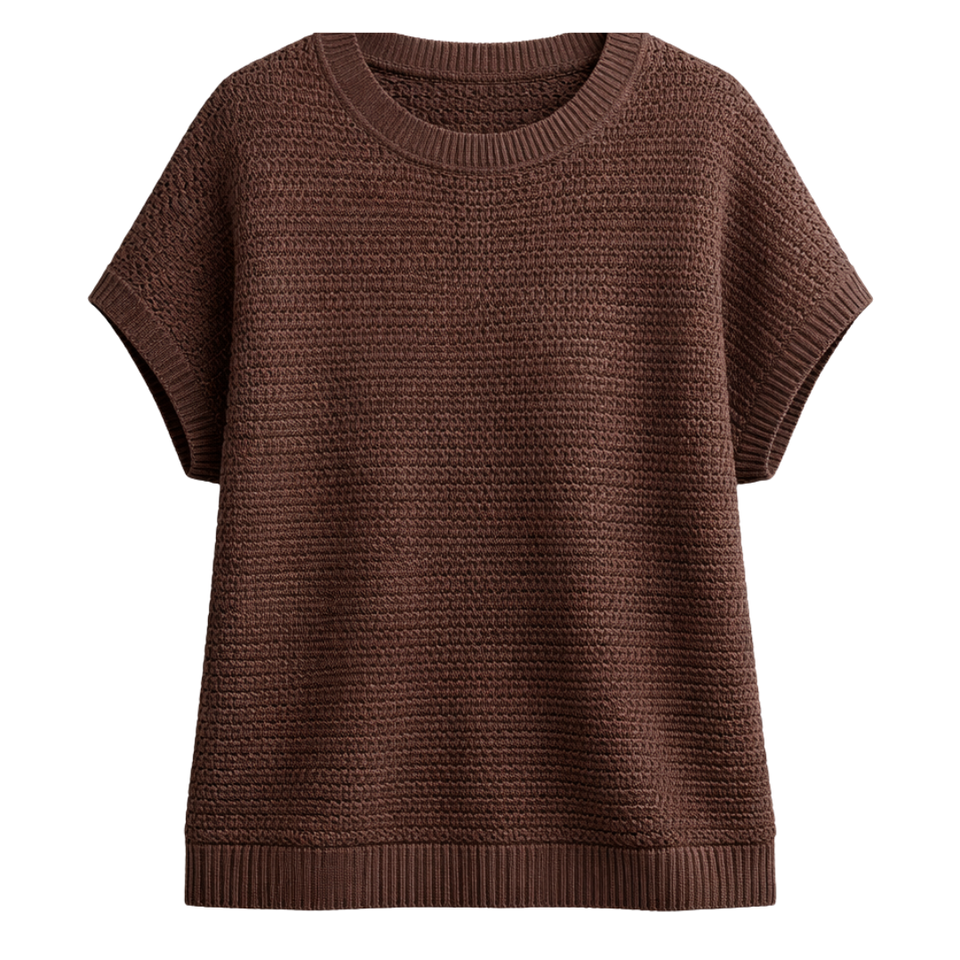 เสื้อไหมพรมแขนสั้นทรงหลวมสำหรับผู้หญิง ผ้าเนื้อสัมผัสพิเศษ ใส่สบาย ระบายอากาศได้ดี เหมาะสำหรับฤดูร้อน สไตล์ลำลอง แฟชั่นเสื้อสเวตเตอร์