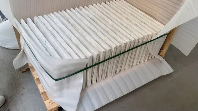 กระเบื้องหินตกแต่งผนังภายนอกอาคาร ลายหินธรรมชาติแบบแบ่งชั้น บิอันโก บอตติชิโน จากตุรกี