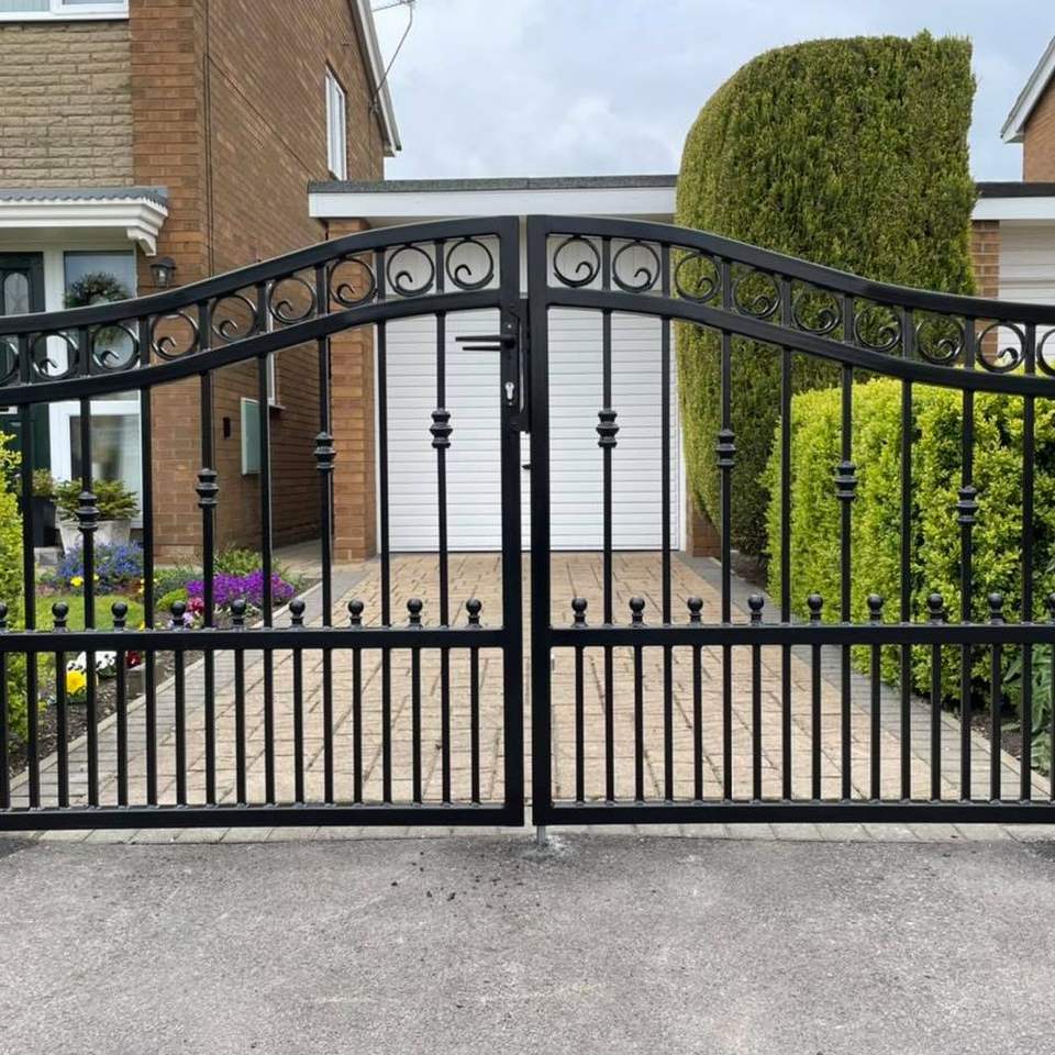 ประตูเหล็กดัดภายนอก ประตูทางเข้าหลักเหล็กดัด ราคาประตูเหล็กดัดสำหรับสวน ประตูรั้วเหล็กดัดสำหรับที่อยู่อาศัย