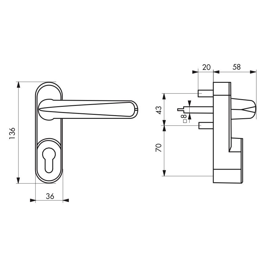 มือจับประตูแบบก้านโยกภายนอก สีขาว ไม่มีกระบอกสูบ สำหรับใช้กับประตู