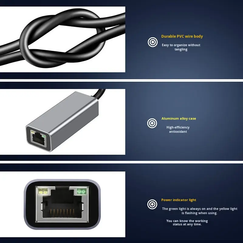 USB C ไปยังอะแดปเตอร์อีเธอร์เน็ต RJ45กิกะบิตตัวแปลงเครือข่ายแลนสำหรับแล็ปท็อปแมคบุ๊กโปรแอร์สั่งซื้อจำนวนมาก