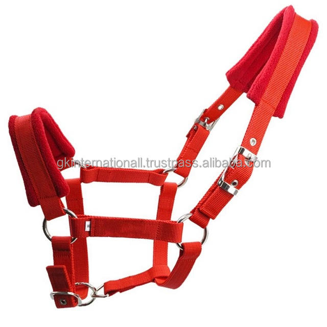 เชือกผูกคอสำหรับแข่งและเชือกจูงม้าไนลอนบุขนแกะสองชั้นใส่สบายเป็นพิเศษเชือกจูงม้าสามสีสดใส