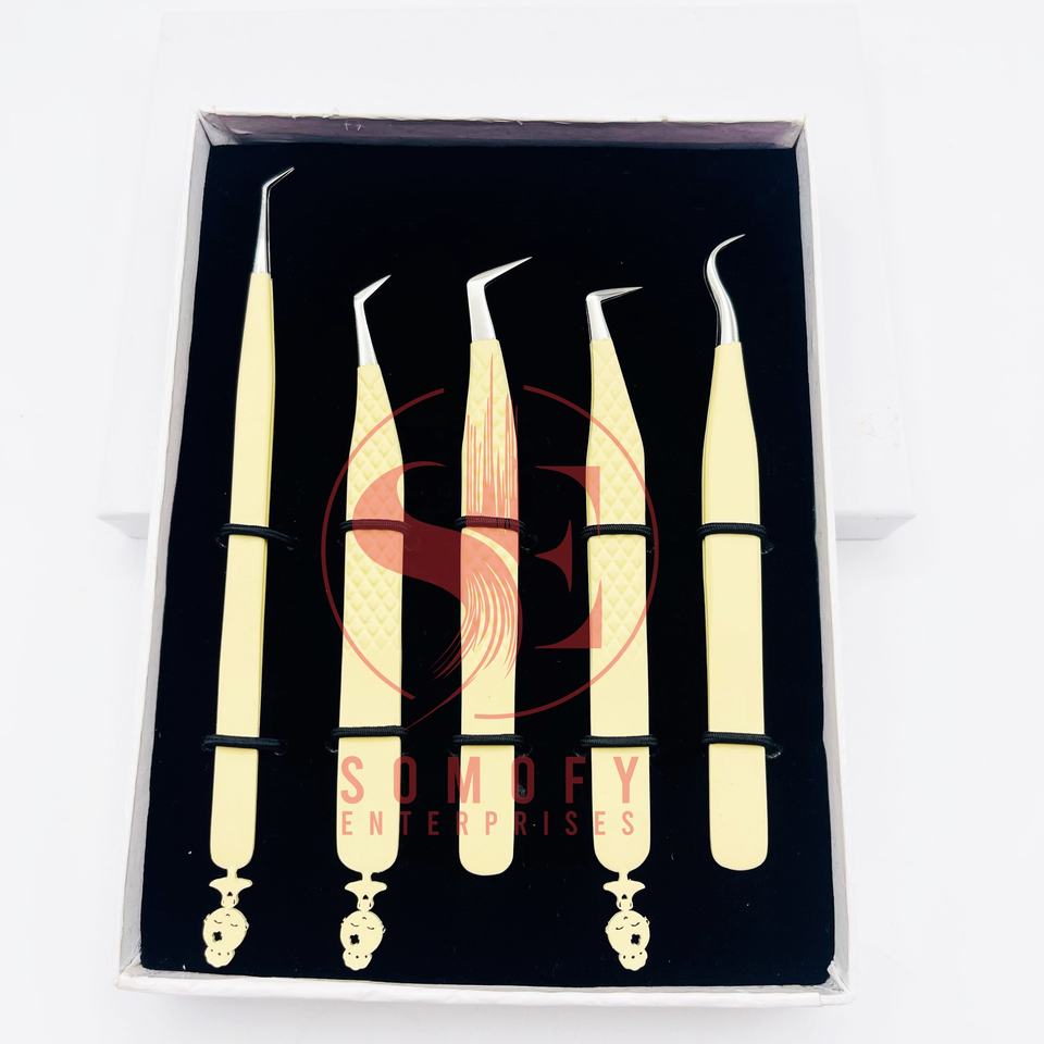 แหนบปลายไมโครเคลือบผงครีมด้ามจับพิเศษสำหรับการต่อขนตาโลโก้ที่กำหนดเองวัสดุสแตนเลสคุณสมบัติใหม่