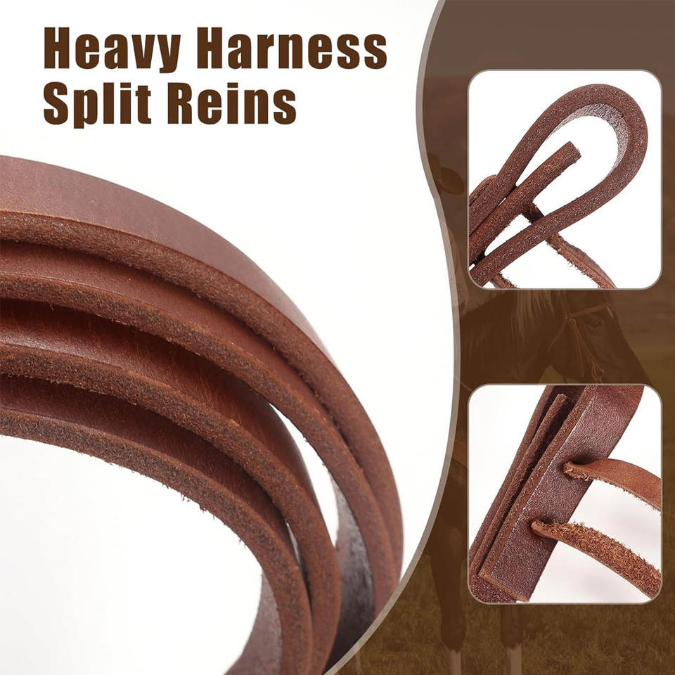 บังเหียนแบบแยกสายรัดพิเศษ5/8 "x 7 'สายหนังนิ่มคุณภาพระดับพรีเมียมสีน้ำตาลถ่วงน้ำหนักแตกหักเมื่อสัมผัสน้ำมันหนัก