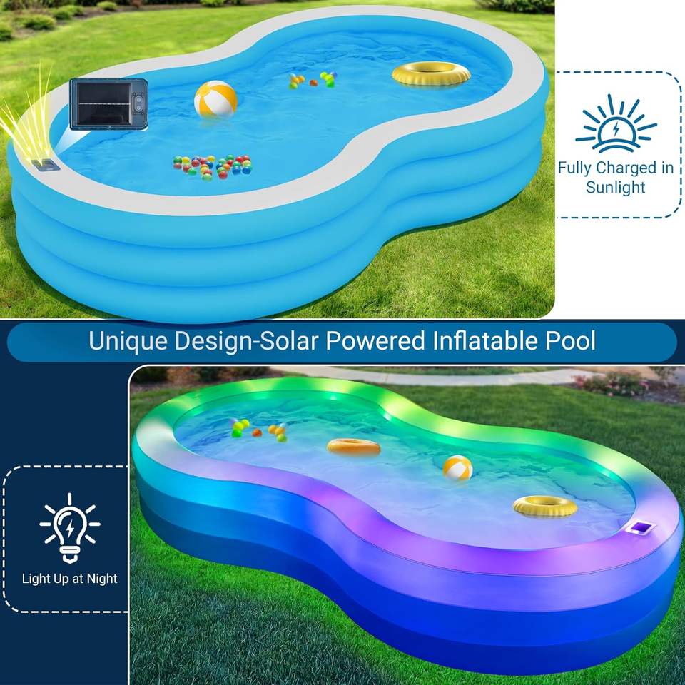 สระน้ำพลังงานแสงอาทิตย์แบบเป่าลมได้16โหมดแสงหนา130 ''x 72'' X 22 ''เครื่องมือหมุนสำหรับสวนหลังบ้านสนามหญ้าในร่ม130