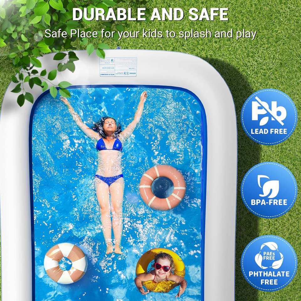 สระว่ายน้ำเป่าลมหนา158 "x 74" x 22 "ขนาดใหญ่มากสำหรับครอบครัวและผู้ใหญ่สนามหลังบ้านอุปกรณ์ว่ายน้ำในสวน