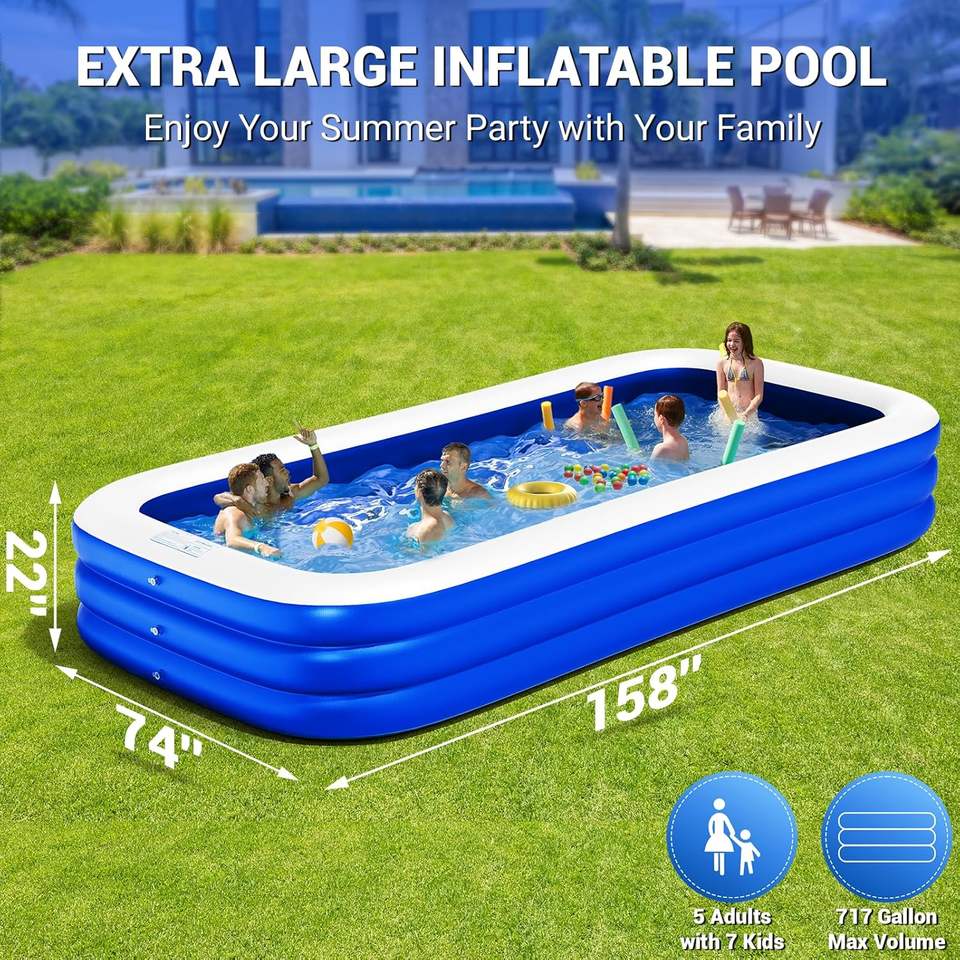 สระว่ายน้ำเป่าลมหนา158 "x 74" x 22 "ขนาดเต็มทั้งครอบครัวและผู้ใหญ่สนามหลังบ้านว่ายน้ำกลางแจ้งสำหรับบ้านและสวน